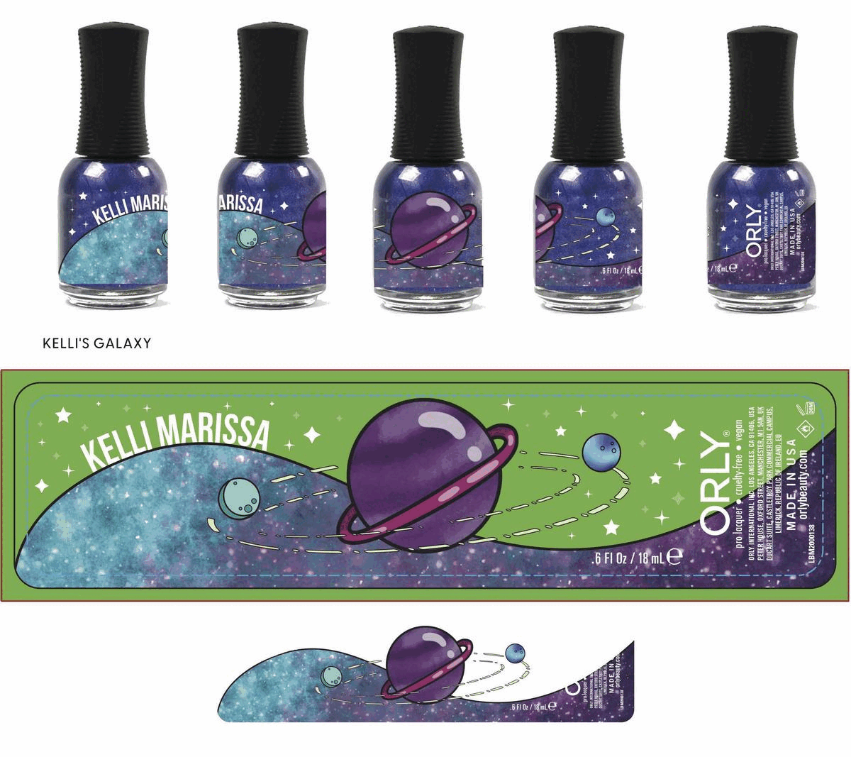I had the pleasure of Project Managing the ORLY X Kelli Marissa Galaxy Remix project. This was the first of two projects that I had the opportunity of managing for this particular collaboration. I was involved in all aspects of the project; brainstorm, concept, naming, working closely with both Design and Production teams on artwork and packaging for the two trio sets, as well as the content creators to supplement with additional content through ORLY social channels.